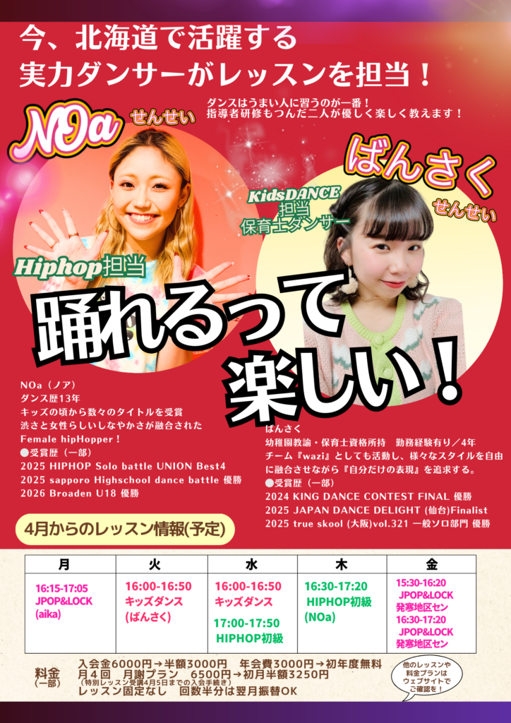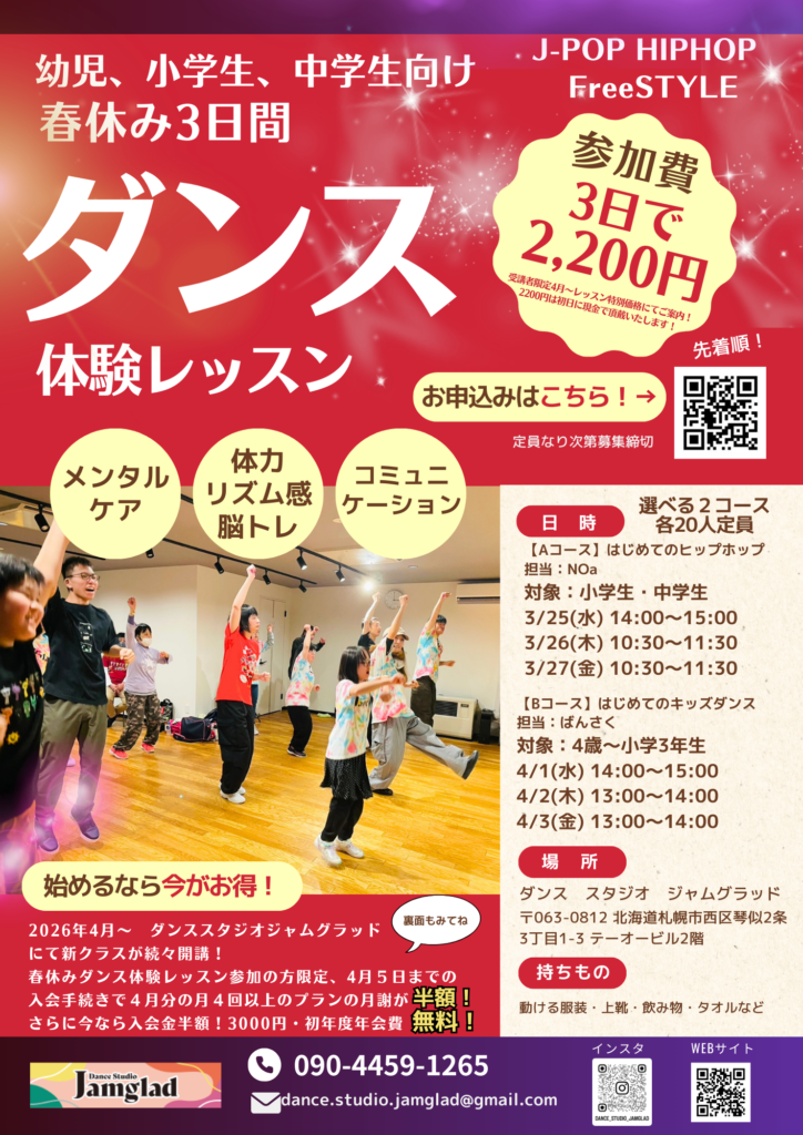 春休み限定3日間のダンス体験レッスン を開催します✨
