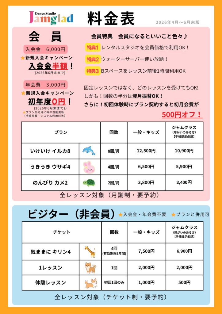 いつもDance Studio Jamgladをご利用いただき、ありがとうございます😊