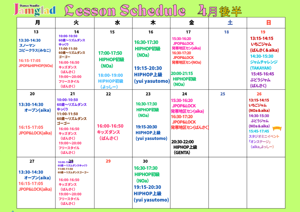 4月のレッスンスケジュール、少し変更がありましたので再投稿させていただきます!