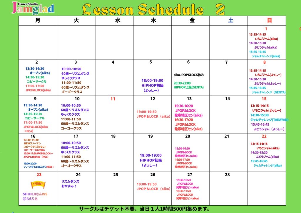 2月のレッスンスケジュール