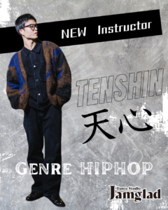 この度、Jamgladインストラクターに新しい先生が加わることとなりました! 山内 天心(てんしん)先生です! 小学1年生からダンスを続け、HIPHOPを軸に実力を磨いてきた実力派ダンサー。チームコンテスト・ソロバトルと […]